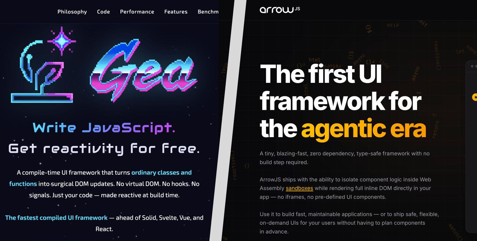 Another day, another new JavaScript framework. Except this time there's two! Gea.js and ArrowJS were both released recently. They share something in common — No signals, no hooks, no runes. Just Ja…